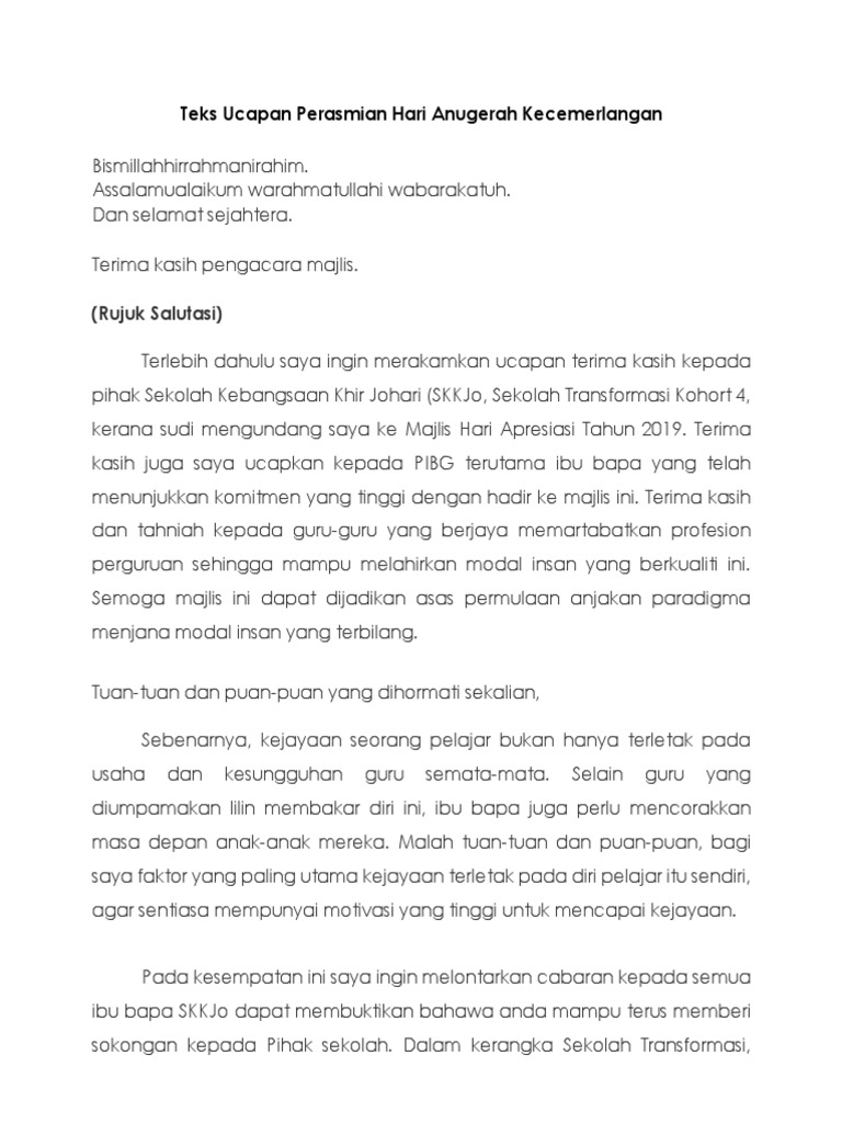 Contoh Teks Ucapan Perasmi Majlis Anugerah Cemerlang Pdf